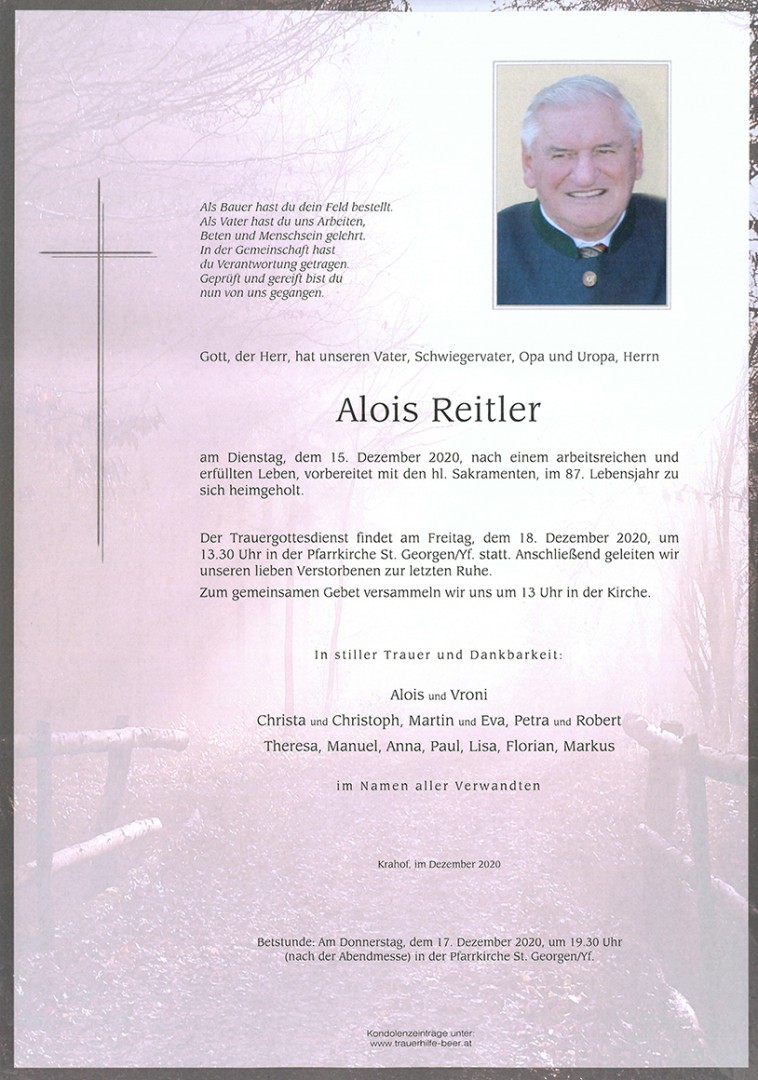 Am Dienstag hast Du Dich,lieber Onkel Lois, von dieser Welt verabschiedet.Du warst ein sehr liebenswerter,freundlicher,fleißiger und offener Mensch....und so werde ich Dich in dankbarer Erinnerung behalten. Rosemarie