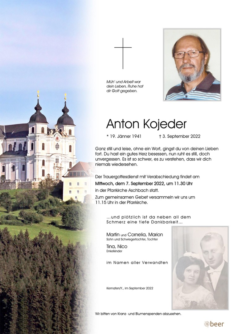 Ruhe sanft in Frieden. Aufrichtige Anteilnahme entbietet Elfriede und Manfred Langenreither