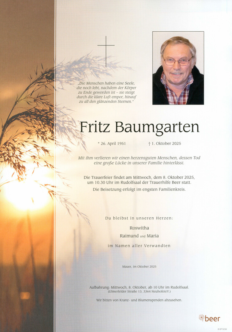 Wir trauern um Fritz Baumgarten