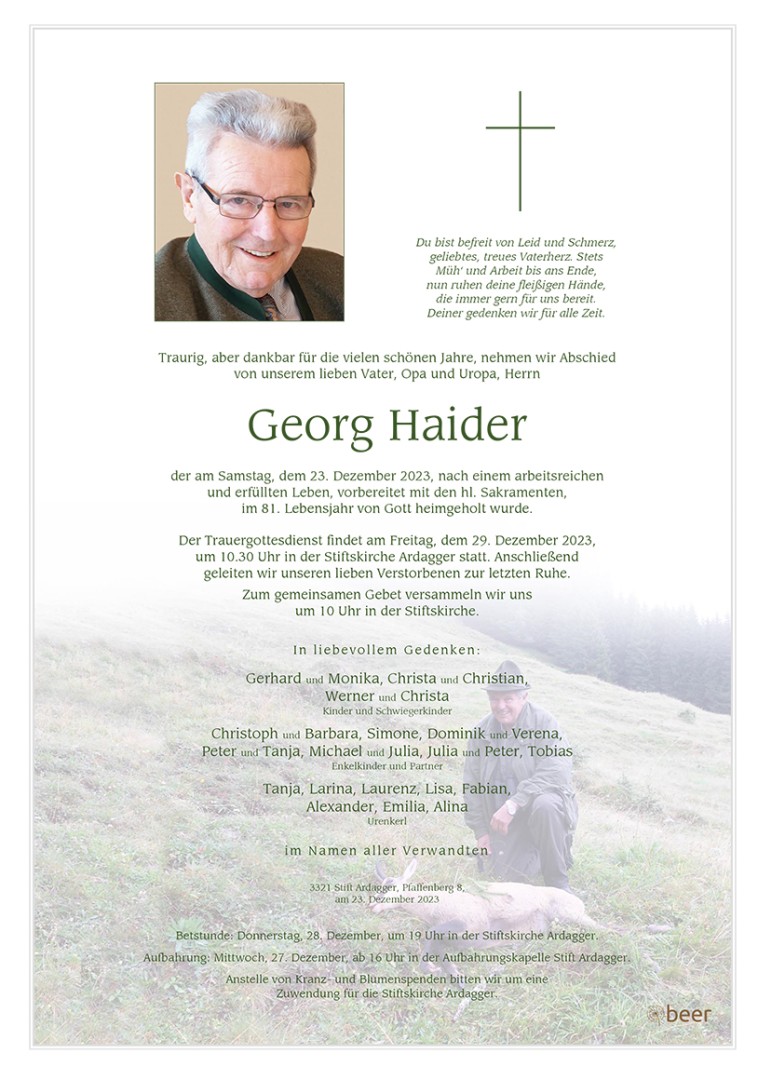 Aufrichtige Anteilnahme Andrea und Franz Polzer