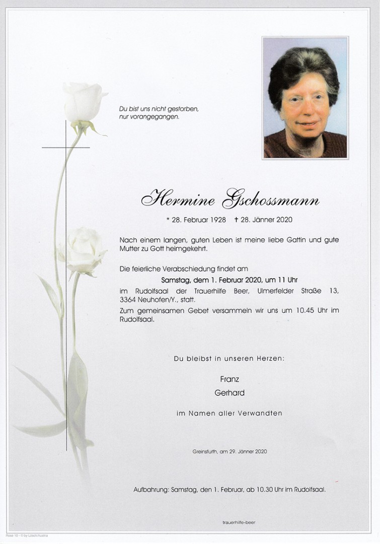 Wir trauern um Hermine Gschossmann