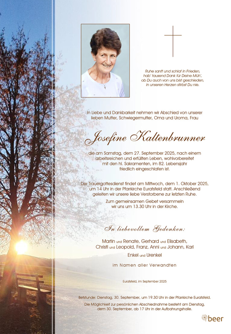 Wir trauern um Josefine Kaltenbrunner