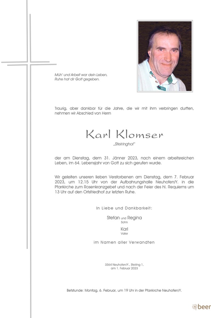Aufrichtiges Beileid Johann u.Christa Kastner