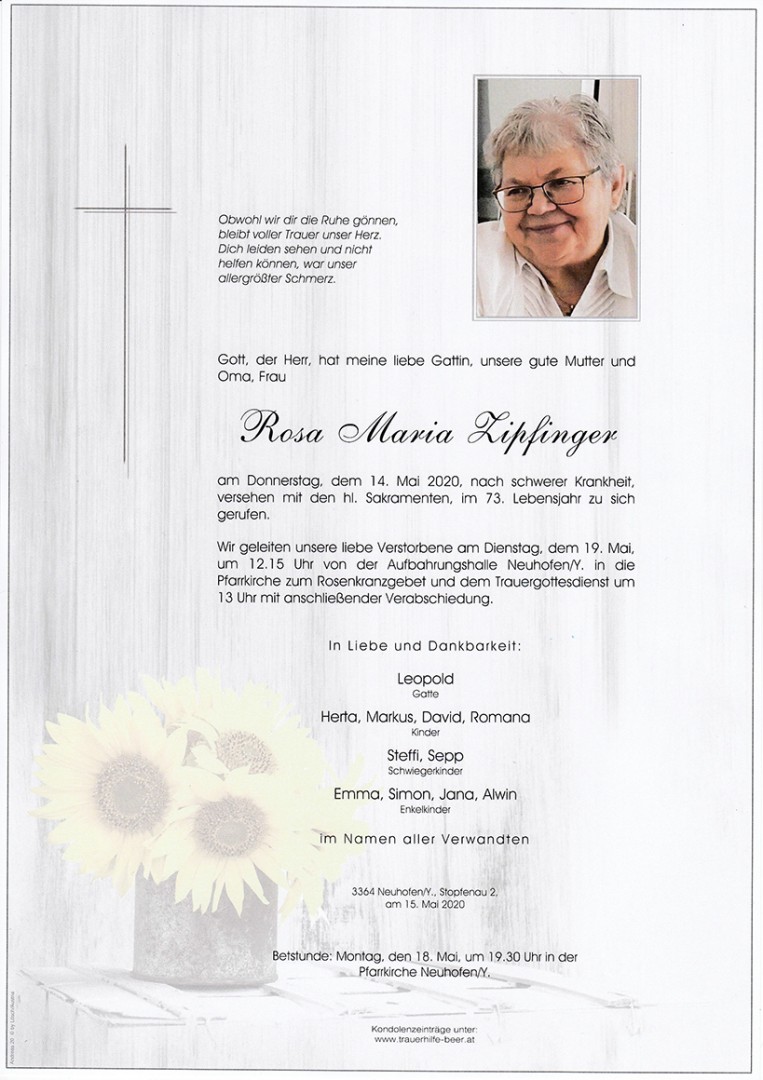 Aufrichtige Anteilnahme zum schweren Verlust und viel Kraft wünschen euch allen